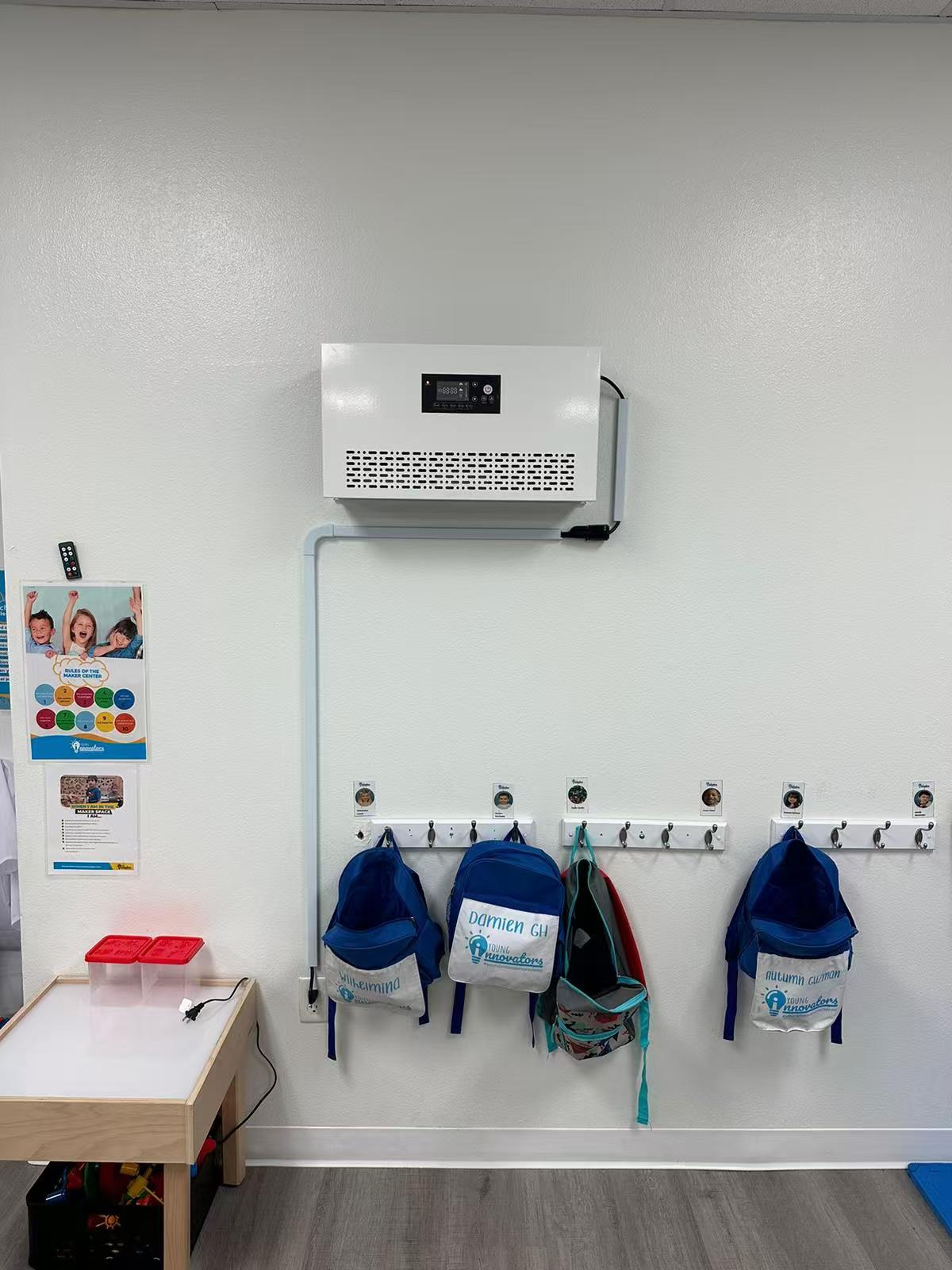 國(guó)外一學(xué)校教室幼兒園 使用飛歌環(huán)保空氣臭氧消毒機(jī)對(duì)空間進(jìn)行殺菌消毒
