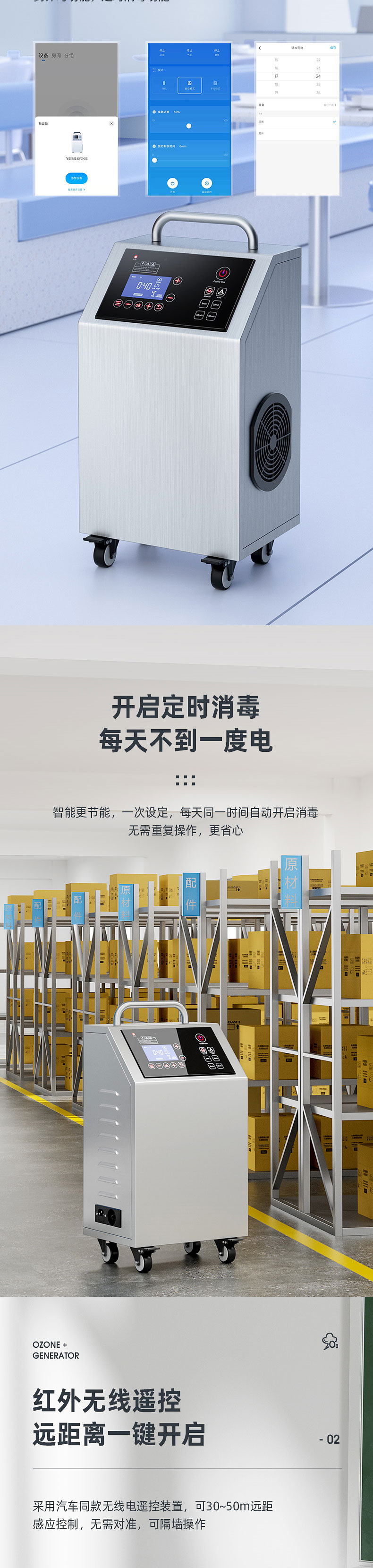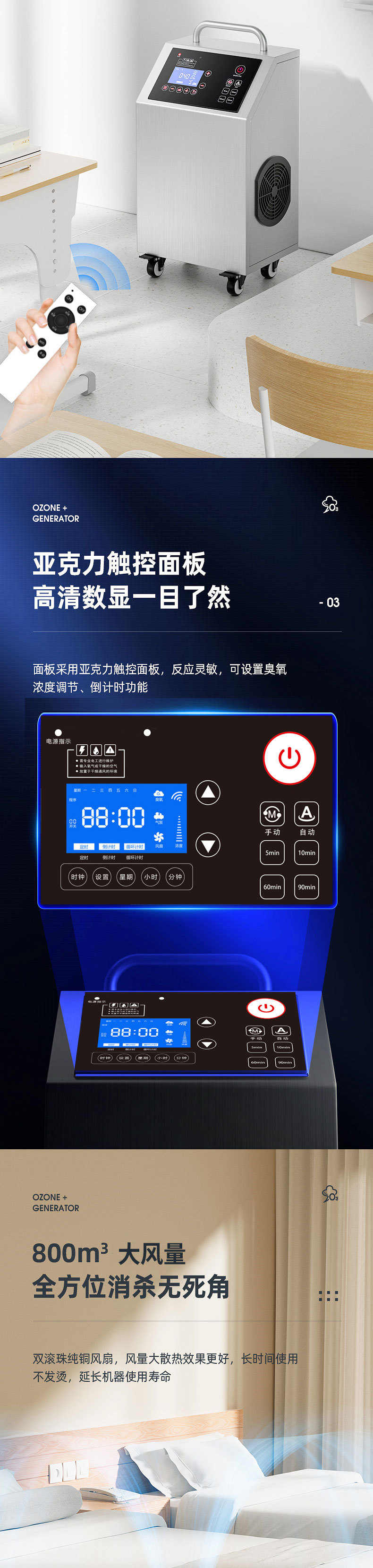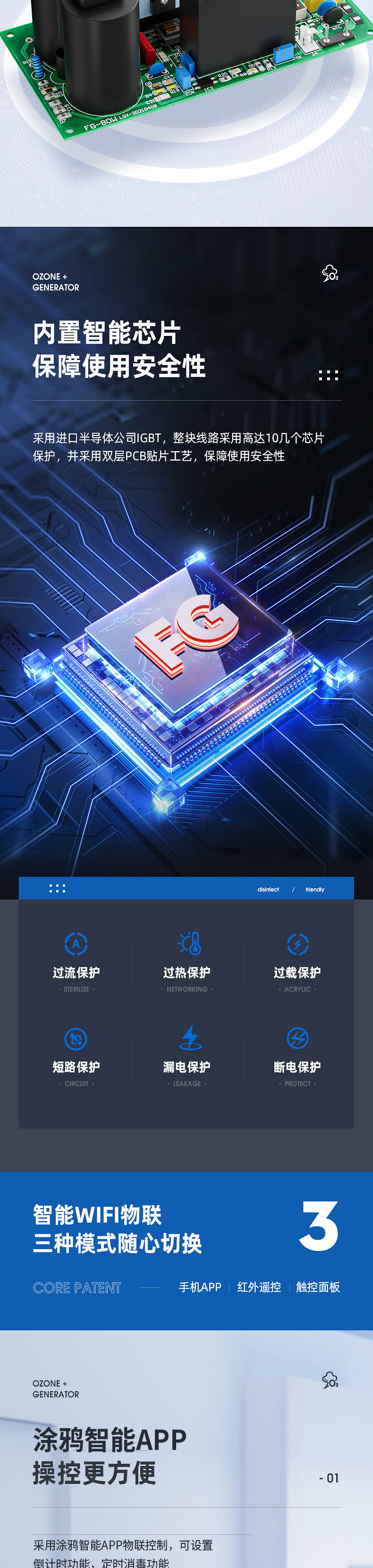 ◆控制面板:飛歌移動(dòng)式智能臭氧發(fā)生器控制部件,是飛歌電子部門自主設(shè)計(jì),研發(fā)的控制板,具有觸控、Wif物聯(lián)、遙控的控制功能