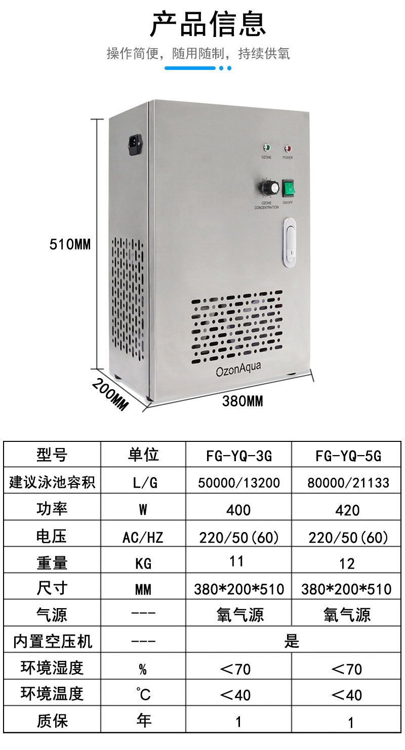 ◆不銹鋼噴漆,耐腐材質(zhì)使用壽命長(zhǎng)、內(nèi)置制氧系統(tǒng)、強(qiáng)力散熱風(fēng)扇提高產(chǎn)品使用壽命