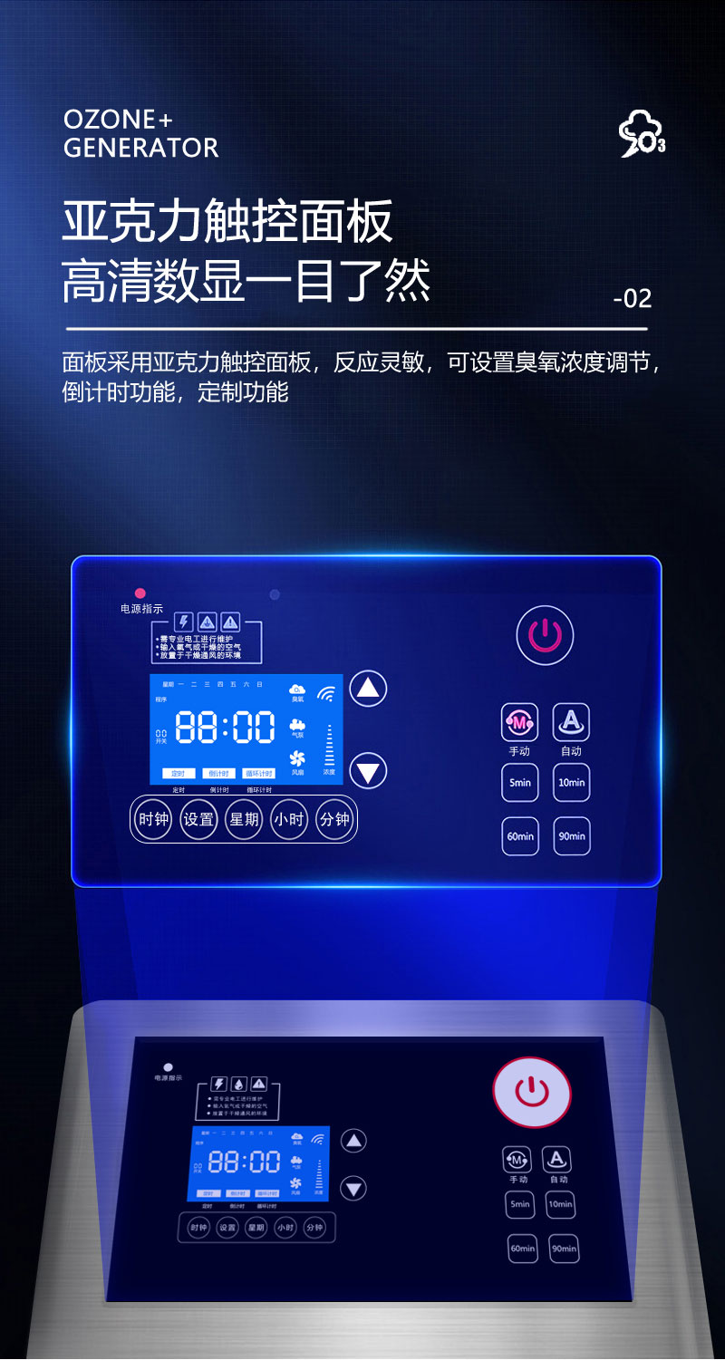 ◆控制面板:飛歌立式智能臭氧發(fā)生器控制部件,是飛歌電子部門自主設(shè)計(jì),研發(fā)的控制板,具有觸控、Wf物聯(lián)、遙控的控制功能
