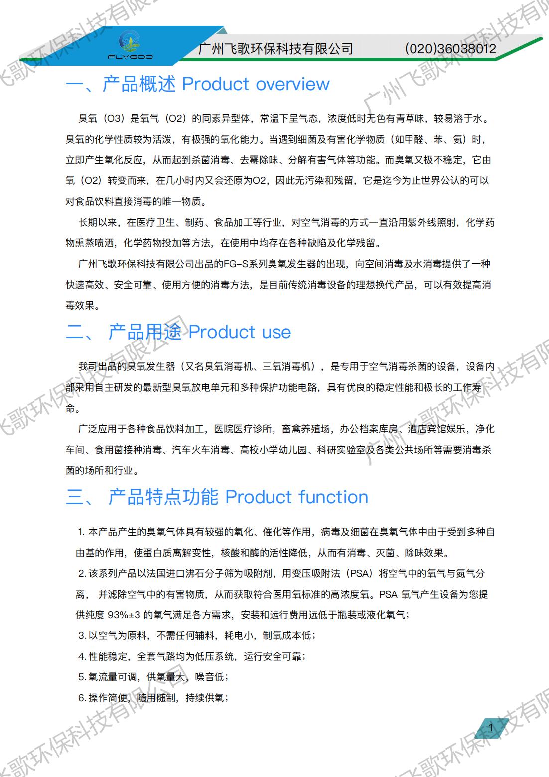 飛歌風(fēng)冷FG-YQ-3-20氧氣源臭氧發(fā)生器產(chǎn)品使用說(shuō)明書(shū)